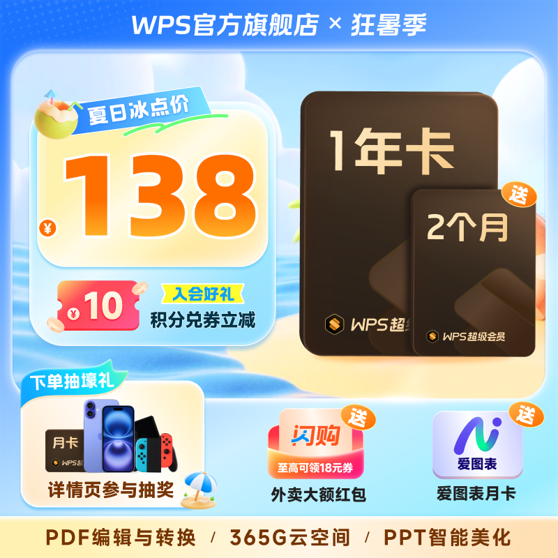 金山软件WPS会员年卡正在天猫精选热卖中。其原价为168元,现在下单可参与立减30元的优惠活动,实付低至138元。