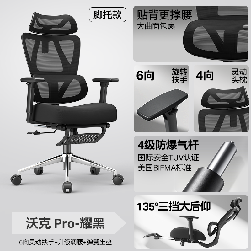 这款电脑椅有很多亮点。它采用腰背分离设计与高弹三维腰靠,能自适应感知,让腰椎更放松。椅背接触面是经纬复编特网,柔而不塌,舒适承托。云感软弹坐垫由air呼吸网布、高回弹35D海绵、20个独立弹簧和杨木曲木板组成,加上马鞍弧形设计,久坐腿也不麻。41cm加宽盾型头枕可全方位承托头颈部,135度大角度后仰,午休很舒适。还有3D软PU扶手、3mm加厚防爆钢板、五星钢制脚等配置,是性价比很高的单品。