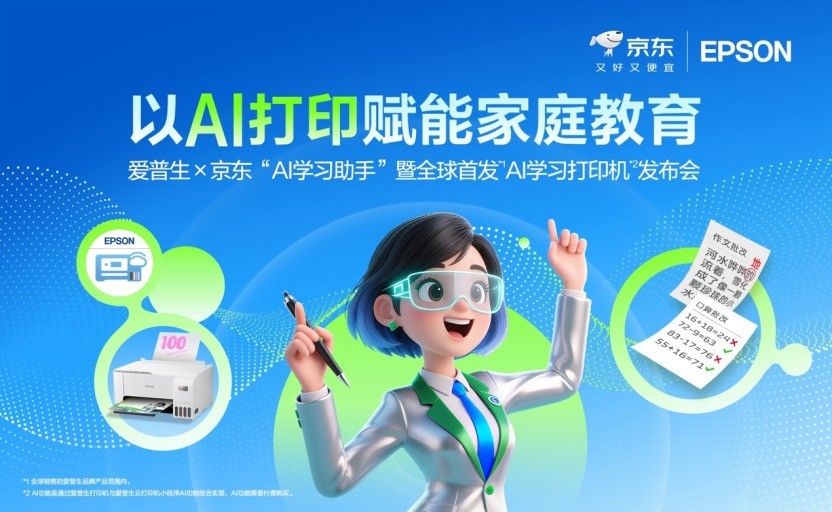 爱普生与京东自2008年开启合作以来,共同打造出L3251无线墨仓打印机、迪士尼草莓熊IP打印机等多款行业爆品,携手推出了微信打印、AI语音打印等深度创新的功能,更在墨仓打印机这一细分品类里实现了从“开拓者”到“引领者”的跨越。目前,爱普生与京东的合作已拓展至AI领域,双方基于京东的“AI换新加速计划”,加速推动AI在更多终端设备上的广泛应用和市场普及。此次,爱普生与京东全球首发*1AI学习打印机,是AI技术落地打印品类的重要里程碑,为更多家庭提供了全新的AI智能打印解决方案。未来,双方将持续围绕AI产品创新和服务升级,不断优化智能交互体验,打造更适配智慧家庭与高效办公场景的新产品。