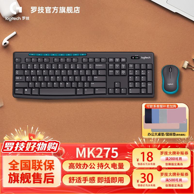 拼多多正在促销罗技logitech MK276无线键鼠套装,这款套装专为办公商用设计,键盘是全尺寸的,带有数字小键盘,满足办公中的各种输入需求。鼠标与键盘搭配默契,整体为便携的黑色外观,套装包含K275键盘和M185鼠标。