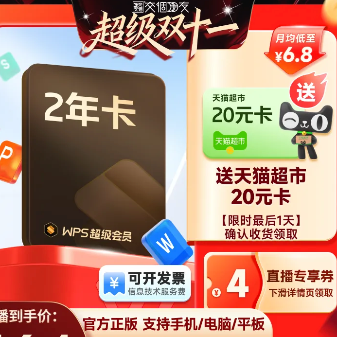 本文属于原创文章,如若转载,请注明来源:天猫88VIP专享!WPS超会2年卡低至159元https://oa.zol.com.cn/1084/10840357.html