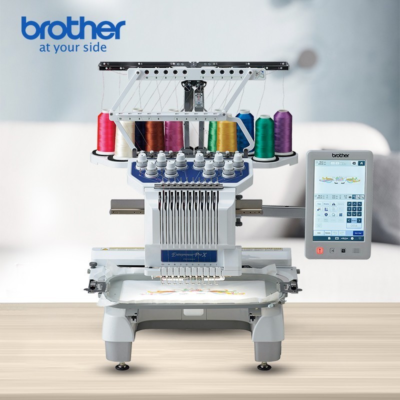 brother PR1055X 单头10针电脑绣花机是一款专为专业刺绣需求设计的高性能设备,集精准、高效与多功能于一体,适用于家庭手作爱好者及小型工坊用户。该机型配备10根自动穿线针,支持连续绣花无需频繁换线,大幅提升工作效率,内置多种绣花图案并支持自定义设计导入,操作界面直观便捷,配合大尺寸触摸屏轻松掌控每一个细节。机器运行稳定,针迹细腻均匀,适用于各类布料材质,无论是个性化服装定制、家居装饰还是礼品制作都能轻松应对。