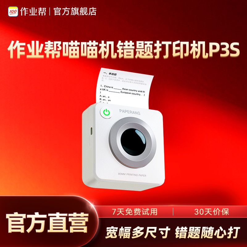 作业帮PAPERANG喵喵机P3宽幅高清错题打印机现正限时优惠,原价309元,现拼多多到手价仅需275元,还赠送一卷十年纸,超值入手不容错过!这款喵喵机P3是作业帮旗下全新升级的错题打印神器,专为学生学习场景打造,最大亮点是将打印宽度提升至80mm,实现3寸宽幅打印,纸张宽度相比老款增加40%,配合300dpi高清打印精度,文字图形更清晰细腻,可一次性打印更多题目内容,复习效率大幅提升。内置1300mAh大容量锂电池,续航持久,Type-C充电接口设计让充电和数据传输更加便捷,即插即用。作为作业帮生态的核心硬件,P3与作业帮App深度互联,支持错题自动整理、在线搜题解析、打印学习资料等多种功能,真正实现智能学习闭环。无论是日常错题归纳,还是考前集中复习,喵喵机P3都是学生提分好帮手,高效又省心,现在入手性价比超高,赶紧抢购吧!