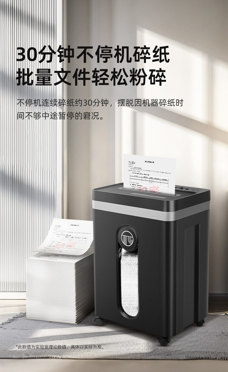 歌派GPS-730碎纸机以高效碎纸为核心,为办公场景打造安全、便捷的纸张处理方案。其5级保密碎纸技术,将纸张切割为极小碎屑,从源头杜绝信息泄露风险,为涉密文件、隐私文档提供坚实防护;单次碎纸能力强大,轻松应对多页文件处理需求,大幅提高办公效率。同时,30分钟不停机碎纸功能,满足长时间连续作业场景,让碎纸流程更流畅;专业减震降噪设计则有效降低碎纸时的噪音与振动,为办公环境营造安静氛围,让碎纸操作不再成为干扰。