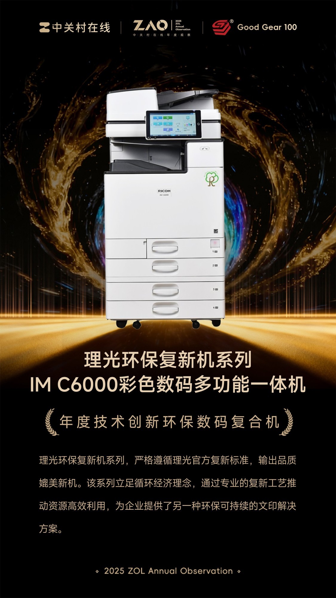 2025年度百大优秀科技产品GG100:理光环保复新机系列IM C6000彩色数码多功能一体机