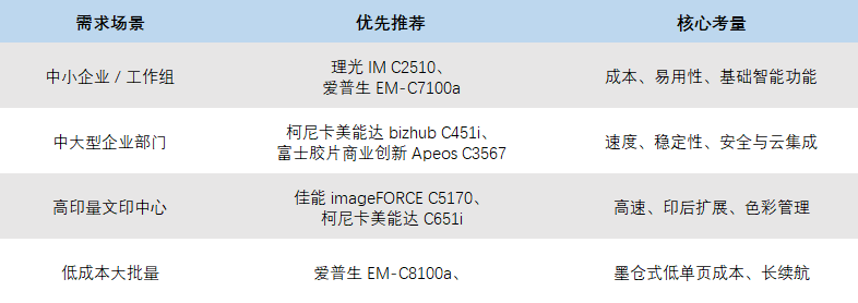 (一)推荐产品:IM C3510(2025年新品,面向中小企业/工作组)